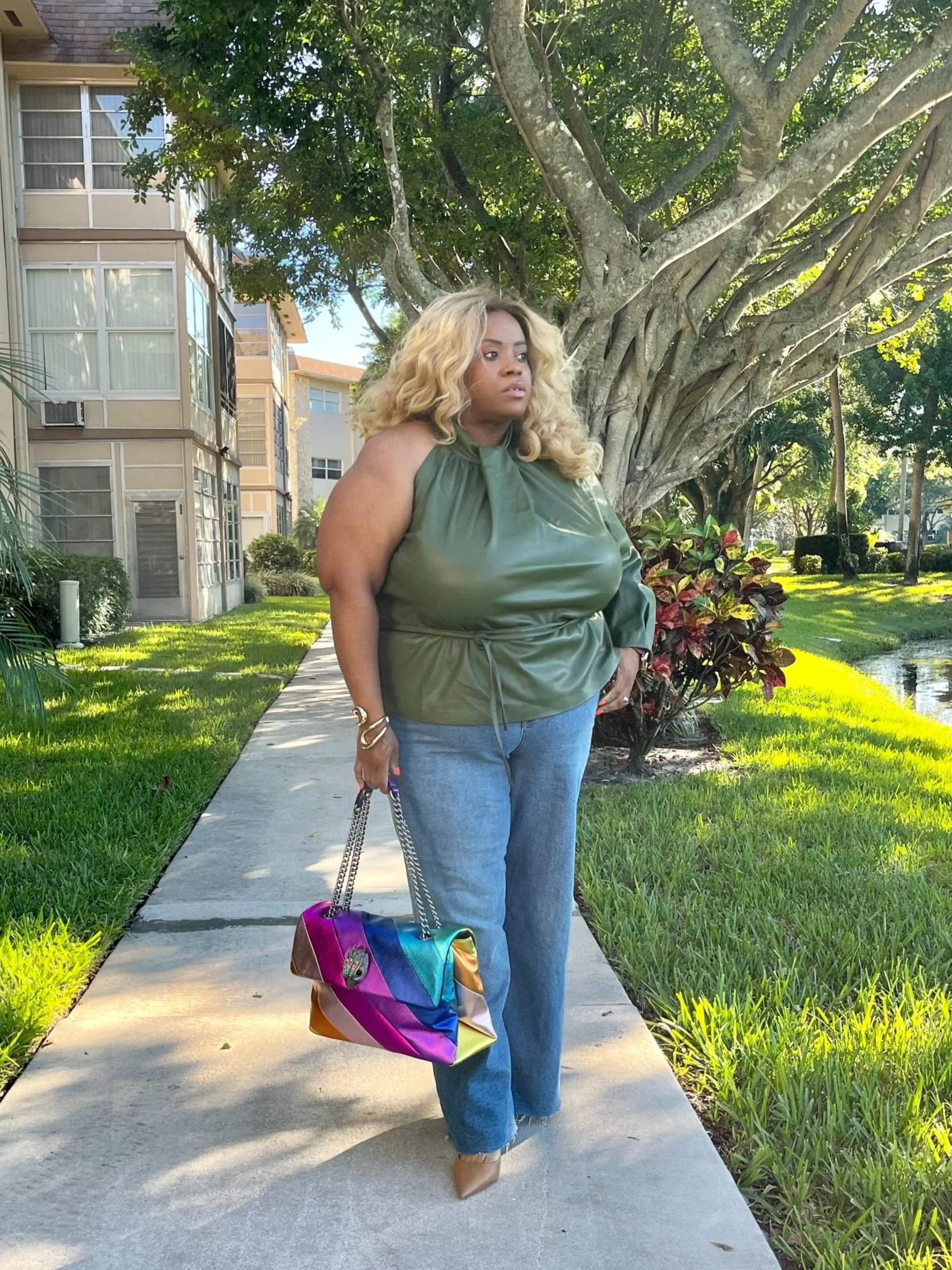 Faux Leather Blouse + Wide Leg Jeans