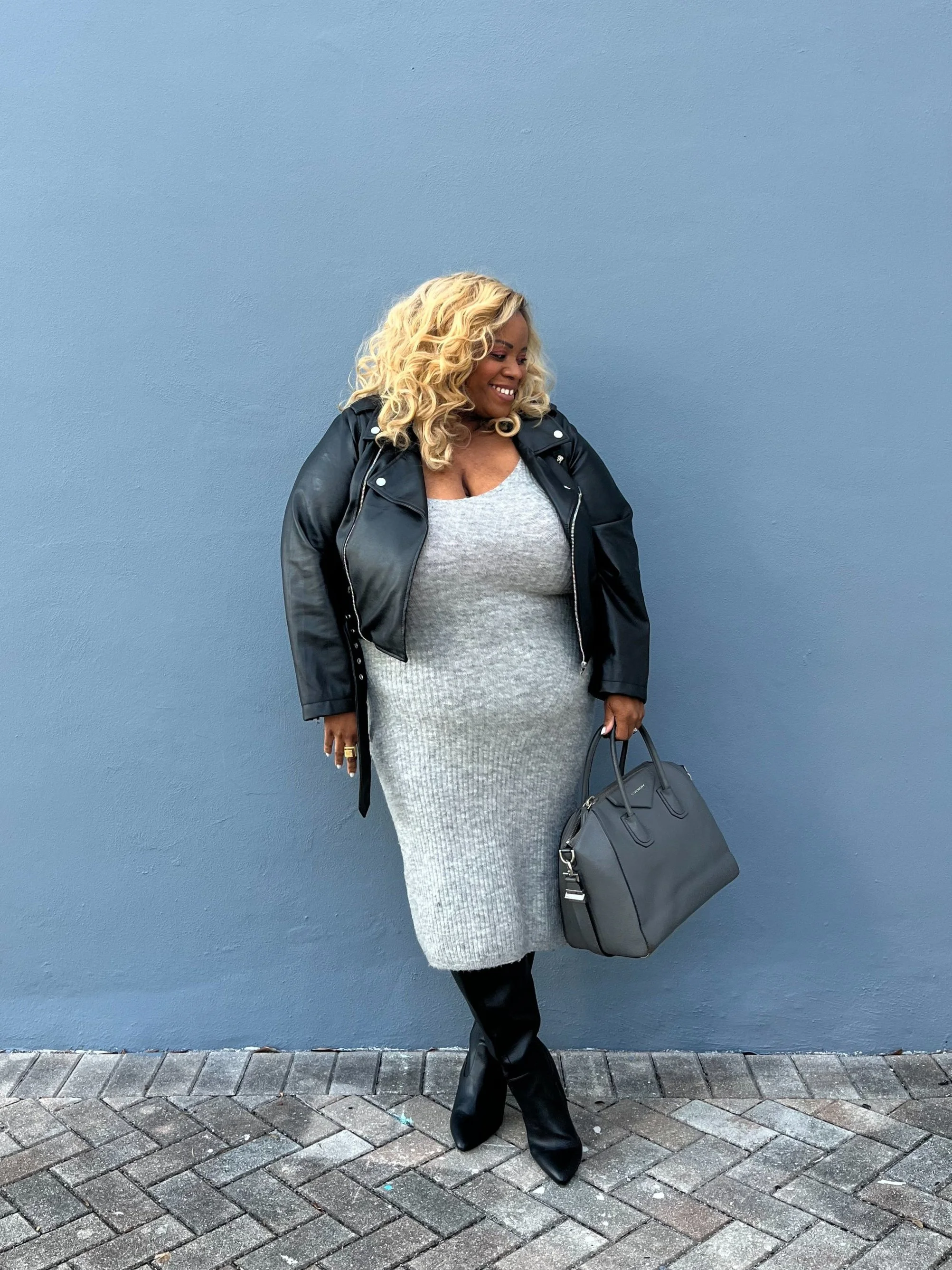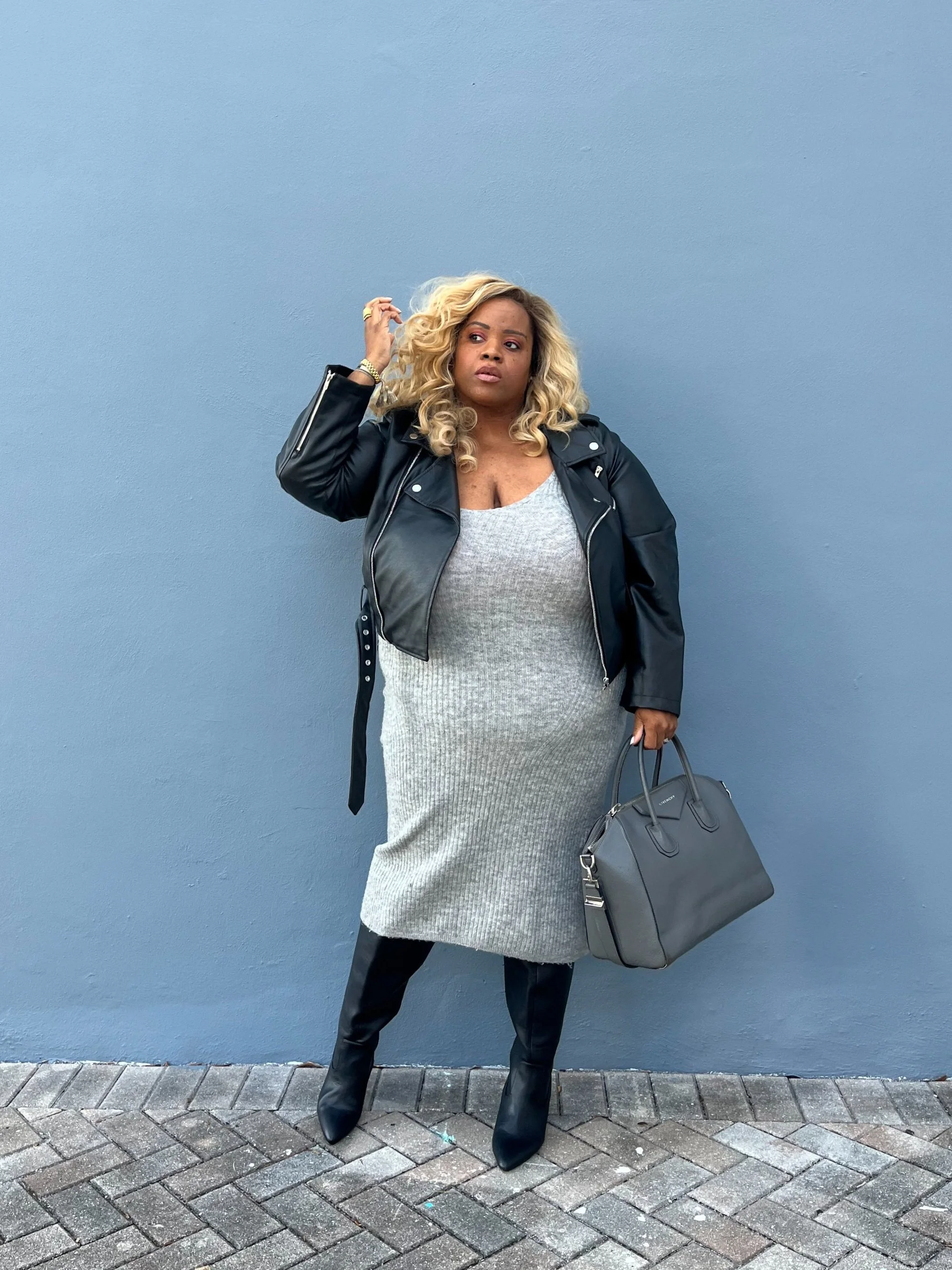 Faux Leather Moto + Sweater Dress